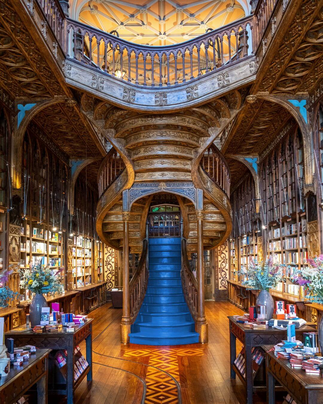 Φυσικά, το ταξίδι συνεχίζεται και μέσα σε βιβλιοπωλεία που μοιάζουν με σκηνικά ταινιών. Το Lello στο Πόρτο, με τη σπειροειδή κόκκινη σκάλα που μαγνήτισε τη φαντασία της J.K. Rowling καθώς έγραφε τον Χάρι Πότερ, είναι πλέον τόσο δημοφιλές που χρειάζεται εισιτήριο για να δρασκελισει κανείς το κατώφλι του.