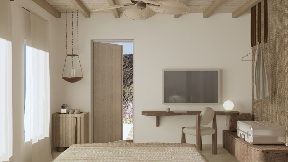 Ένα ξενοδοχείο για μένα, όταν είναι σωστά σχεδιασμένο, λειτουργεί ως μουσικό όργανο. Με το δικό του εσωτερικό σύστημα, σχεδιαστικό και λειτουργικό, αντηχεί τον ιδιαίτερο ήχο κάθε τόπου, εκμεταλλευόμενο τον αέρα που το διαπερνά. Αποτελεί έτσι μια ωδή για τον τόπο και τις αισθήσεις που ενεργοποιεί. Αυτό που κάνουμε στην Αμοργό είναι να ορίσουμε εκ νέου τι σημαίνει πολυτέλεια για αυτόν τον τόπο και πώς αυτή προσδιορίζεται για τους επισκέπτες του με τρόπο που αντιπροσωπεύει το μέρος.