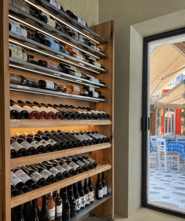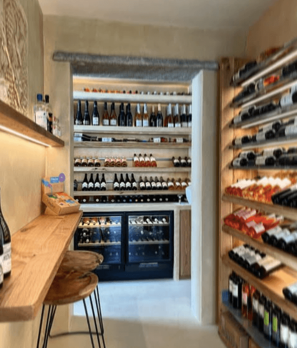 Ενώ για τους οινόφιλους αυτή η μικροσκοπική κάβα ανάμεσα στα παραδοσιακά ταβερνάκια και τα στενοσόκακα κοντά στον παλιό πεζοδρομημένο δρόμο που οδηγεί και εκείνος στην Μεγαλόχαρη, κρύβει κυκλαδίτικους και άλλους μικρούς οινικούς θησαυρούς. Μπουκάλια ιδανικά για να ανοιχτούν στις διακοπές μας στο νησί, εκείνα που θα απολαύσουμε πίσω στο σπίτι αλλά ακόμα εκείνα που θα εμπλουτίσουν τις κάβες των ανθρώπων που αγαπούν πολύ το κρασί.