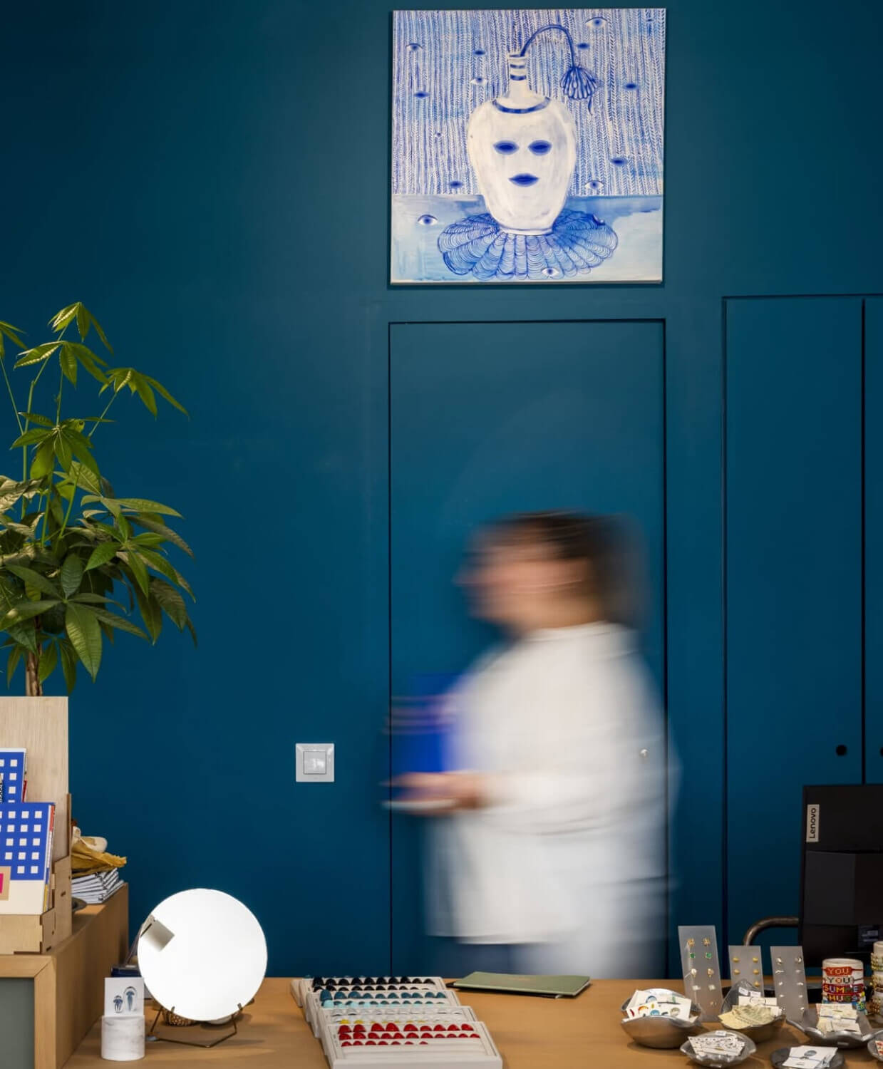 To κατάστημα της Τήνου είναι ένα concept store όπου πλάι στη διάσημη χρωματιστή σειρά της Δάφνης Πετρίδη και τα δαχτυλίδια blots, βρίσκουμε μια ενδιαφέρουσα συλλογή κοσμημάτων, αξεσουάρ και αντικειμένων για το σπίτι που υπογράφουν Έλληνες και ξένοι δημιουργοί.