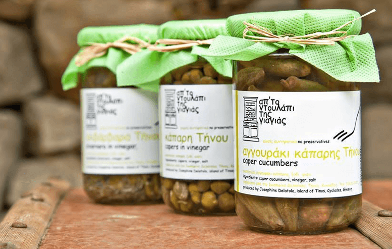 Ένα κάρο μυρωδιές της τηνιακής γης που ταξιδεύουν μαζί μας σε μικροσκοπικά βαζάκια ως το σπίτι, μετά το ταξίδι. Design αντικείμενα και ζωγραφισμένα στο χέρι πιατικά που αναδιαμορφώθηκαν, καλωπίστηκαν και ανανεώθηκαν με πρώτη ύλη, εκείνα, τα οποία ξεχάστηκαν ή που δεν είχαν χρήση πια, σε κάποιο σπίτι ή ταβερνάκι στα χωριά του νησιού.  Πέδιλα φτιαγμένα για να πατούν γερά στα κυκλαδίτικα τοπία και να δημιουργούν αναμνήσεις στα ελληνικά νησιά, καλούδια της τηνιακής γης, προϊόντα φτιαγμένα με τη μαεστρία των τοπικών παραγωγών και παραδοσιακά τηνιακά γλυκά που ταξιδεύουν μαζί μας στο κατάστρωμα των πλοίων από τα γευστικά τοπόσημα της Χώρας της Τήνου.