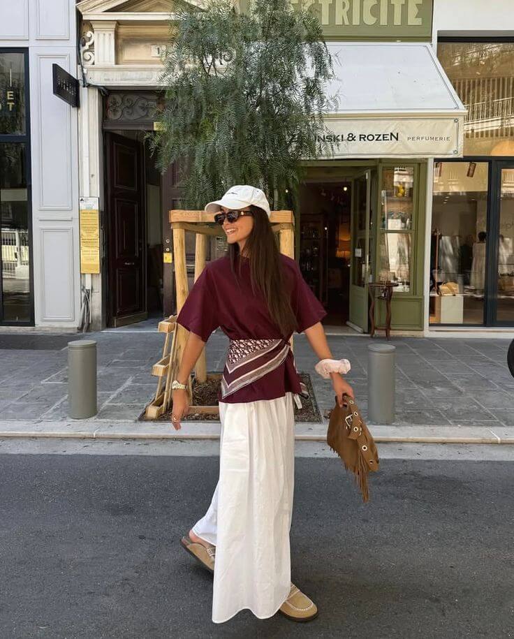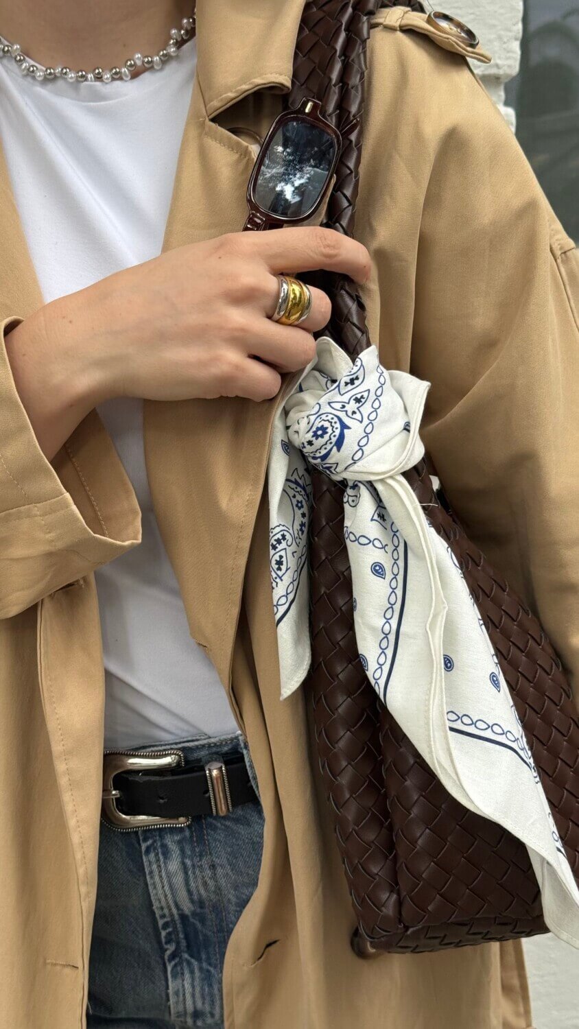• Mix textures: Μεταξωτό φουλάρι με denim ή βαμβακερό outfit δημιουργεί ενδιαφέρουσα αντίθεση.