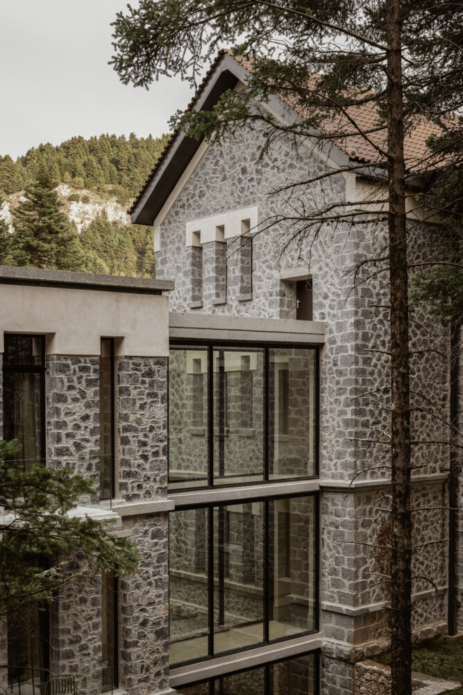 Είναι σίγουρα ένας συνδυασμός πραγμάτων. Δε θυμίζει Ελληνικό παραδοσιακό ορεινό κατάλυμα αλλά ούτε και Αλπικό. Τα γραφεία κατάφεραν νομίζω να παρουσιάσουν κάτι διαφορετικό σε όλα τα επίπεδα και να αναγεννήσουν ένα κτήριο με μοναδική ιστορία και ξεχωριστή ταυτότητα. Είναι και η επιβλητικότητα του κτιρίου που δε περιμένει κανείς να συναντήσει μέσα σε ένα παρθένο δάσος.