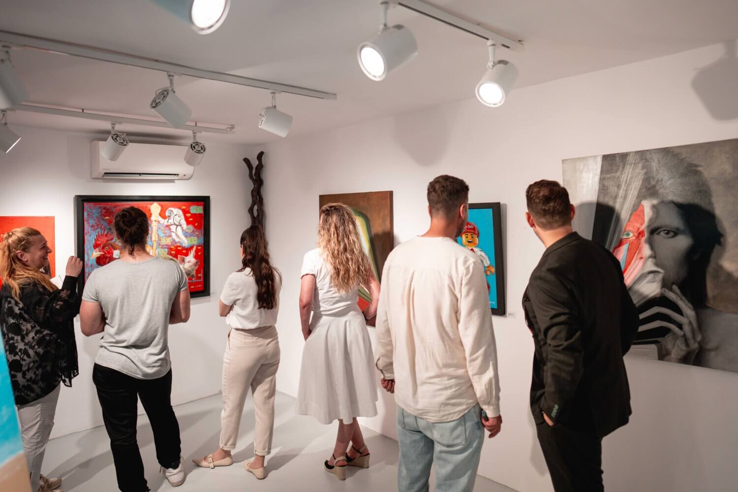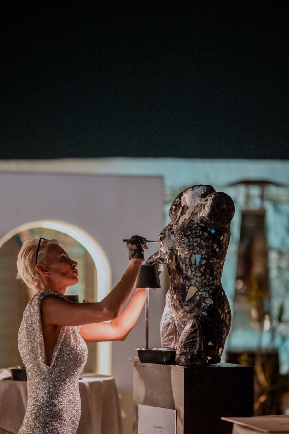 Η Irsa Phanis, καλλιτέχνιδα κυπριακής καταγωγής, έδωσε «λάμψη» σε ένα γυναικείο γλυπτό εφαρμόζοντας την τεχνική του μωσαϊκού και χρησιμοποιώντας λαμπερές ψηφίδες, ενώ η Μιράντα Βατοπούλου aka Mirro, με τη χαρακτηριστική της ματιά και την πολυχρωμία που χαρακτηρίζει τα έργα της, παρέσυρε το κοινό σε μια εικαστική αφήγηση όπου η τέχνη ξεπερνά τα όρια του καμβά.