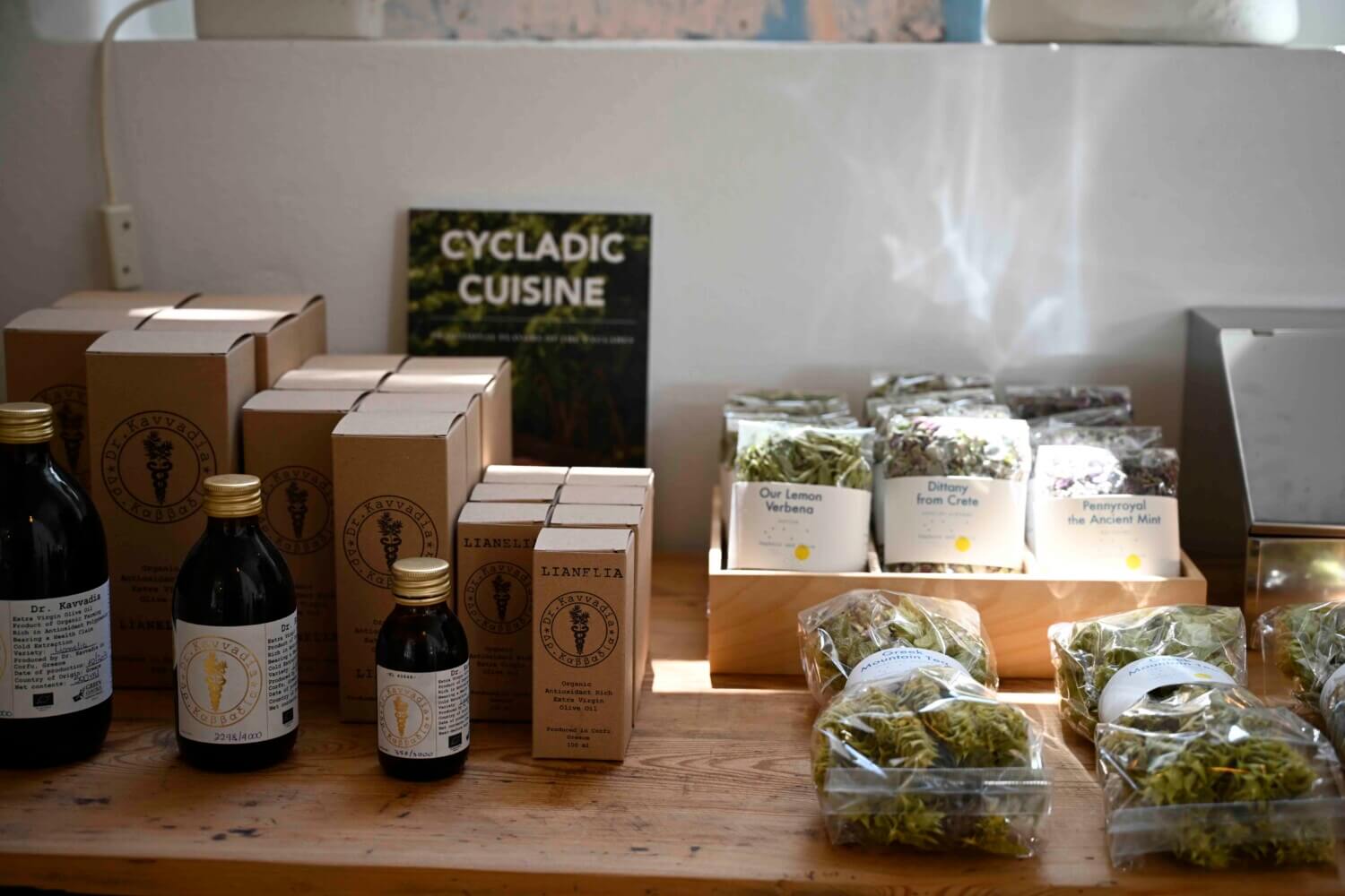 Αλλά και βιβλία, εκδόσεις και περιοδικά. Από τις εκδόσεις του Μουσείου Κυκλαδικής Τέχνης και του Μουσείου Μπενάκη, του Phaidon, του Hyper Hyppo, του Desired Lanscapes, της Kyklada Press και τα ταξιδιωτικά ή αλλά περιοδικά όπως τα Nomas, Kennedy Magazine,  The Greek Foundation, τις εκδόσεις από το Μonocle που σχετίζονται με την Ελλάδα αλλά και ξένες εκδόσεις γεμάτες με ελληνικές συνταγές από την Ελλάδα και τα νησιά.