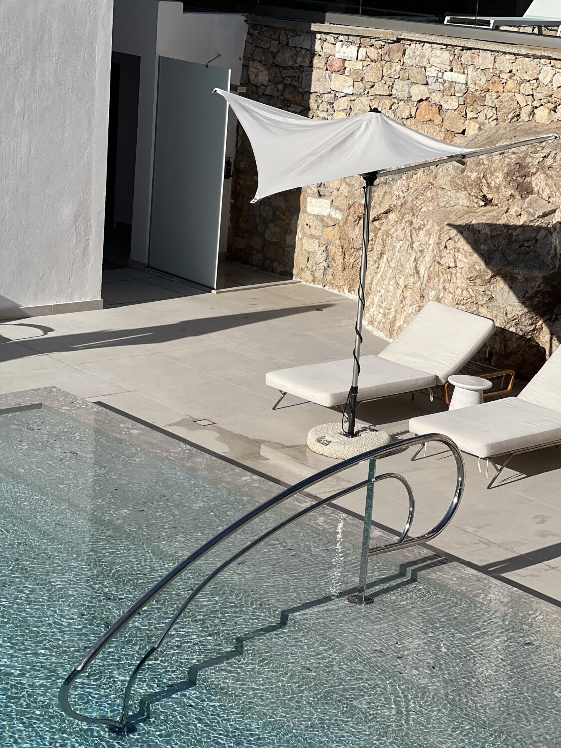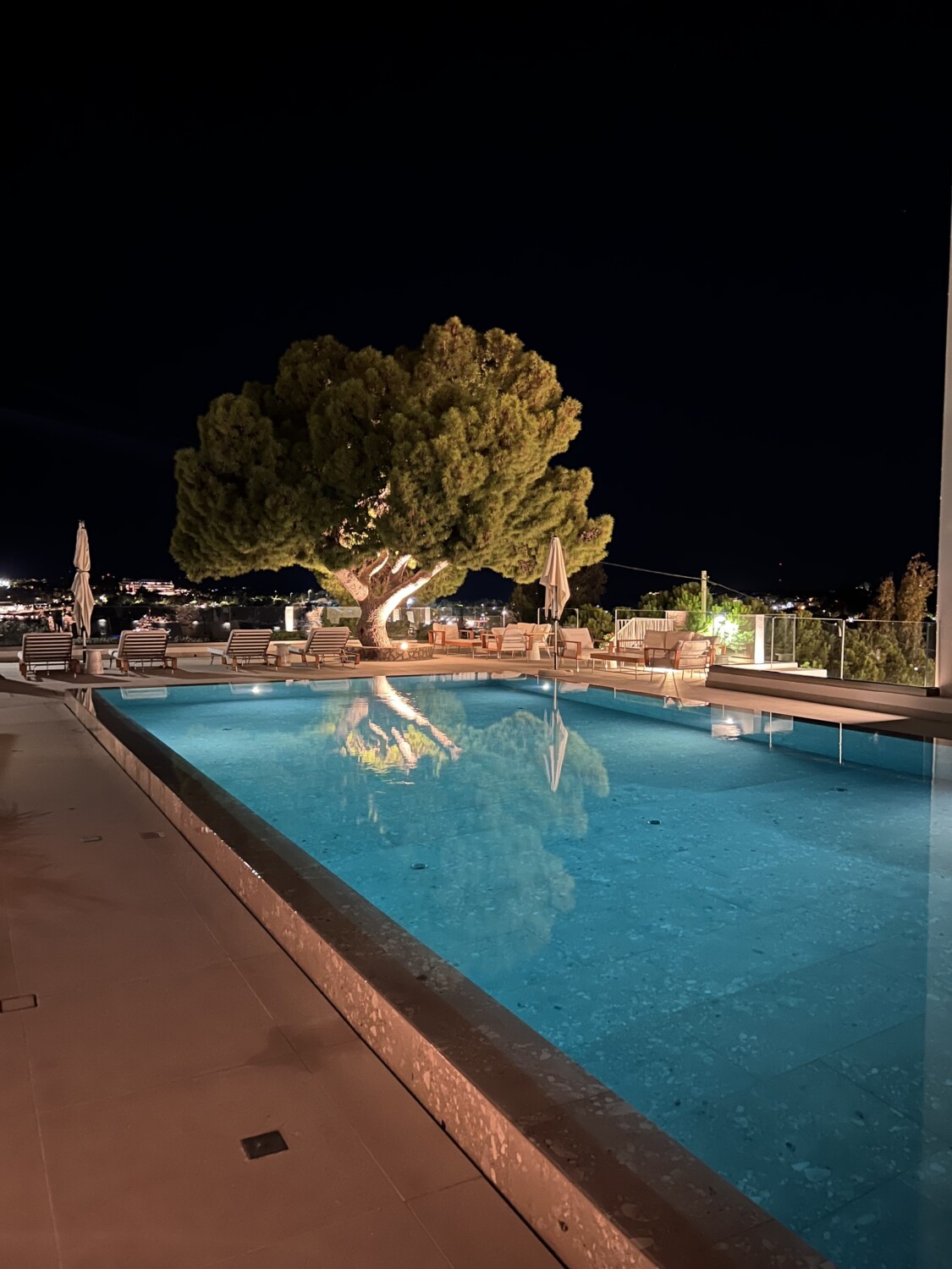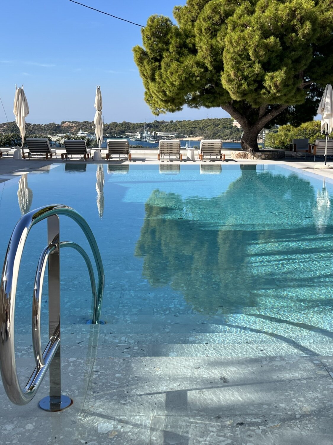 Η πισίνα που έχω πάντα στην πρώτη θέση στην καρδιά μου είναι αυτή του Mandola Rosa, στην Κυλλήνη. Βλέποντας όμως την νέα πισίνα του The Roc Club, τα πράγματα κάπως αλλάζουν. Εντυπωσιακή, απέραντη, ταξιδιάρικη! Με αυτές τις λέξεις θα μπορούσα να χαρακτηρίσω την πισίνα. Μια τεράστια βεράντα με την πισίνα να σε προσκαλεί για ατελείωτες ώρες χαλάρωσης και με τη θέα να σου δημιουργεί δέος. Ο χώρος της πισίνας μου άρεσε πολύ, γιατί ξεφεύγει από το κλασικό μοτίβο ξαπλώστρα ομπρέλα και τέλος. Άνετοι καναπέδες, πολυθρόνες και φυσικά τεράστιες ξαπλώστρες δεν λείπουν από τον χώρο της πισίνας. Αυτό που μου έκανε εντύπωση είναι πώς έχουν εκμεταλλευτεί τον φυσικό βράχο που βρίσκεται πίσω από την πισίνα, δημιουργώντας private corners με ξαπλώστρες και ομπρέλες για αυτούς που αναζητούν ιδιωτικότητα. Κάτω από την σκιά του τεράστιου πεύκου, απόλαυσα το καφεδάκι μου και ένα snack με συνοδεία τους ήχους από το θρόισμα των φύλλων και το κελάρυσμα του νερού της πισίνας.