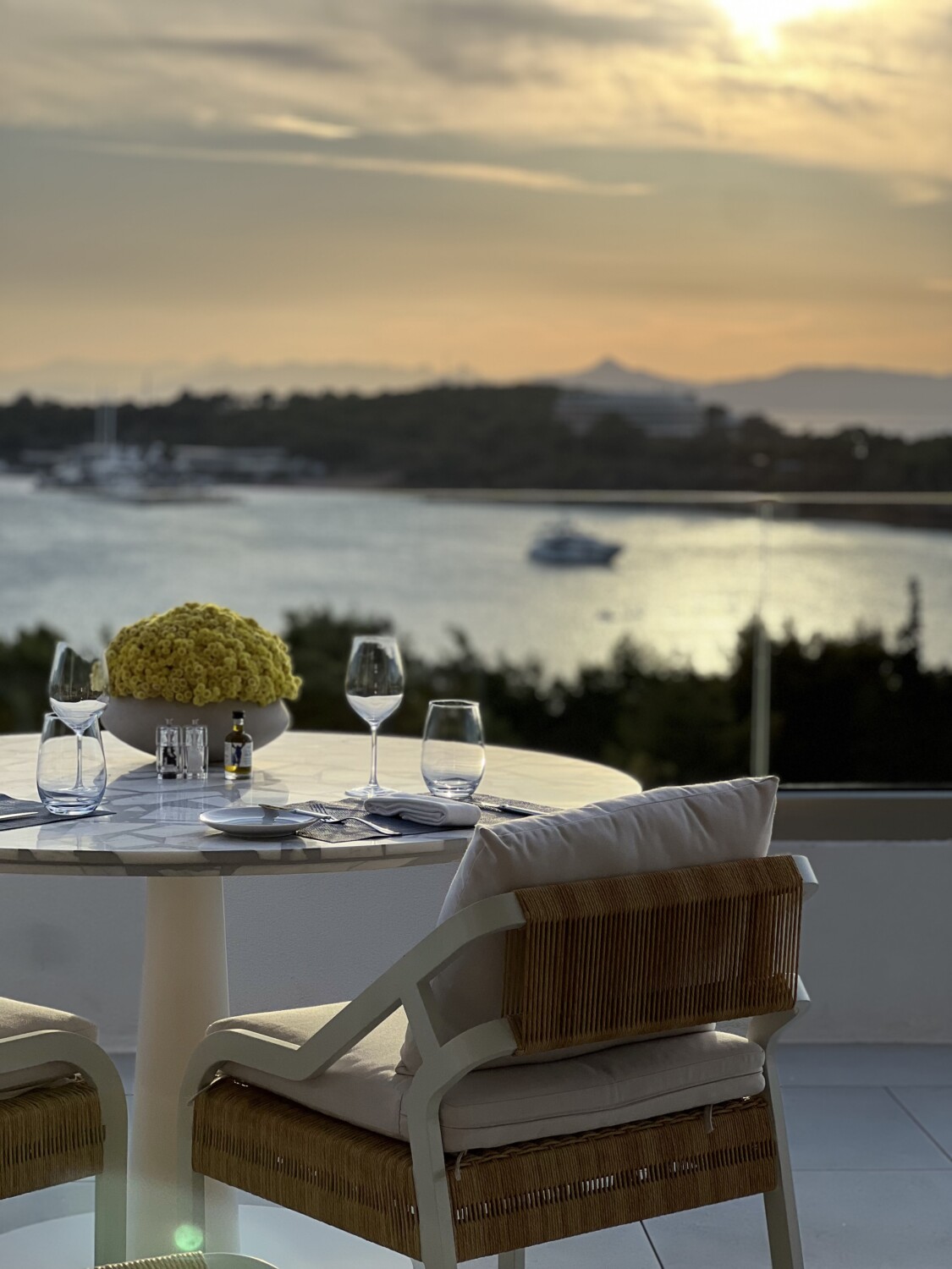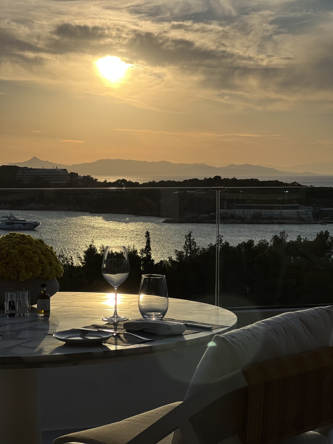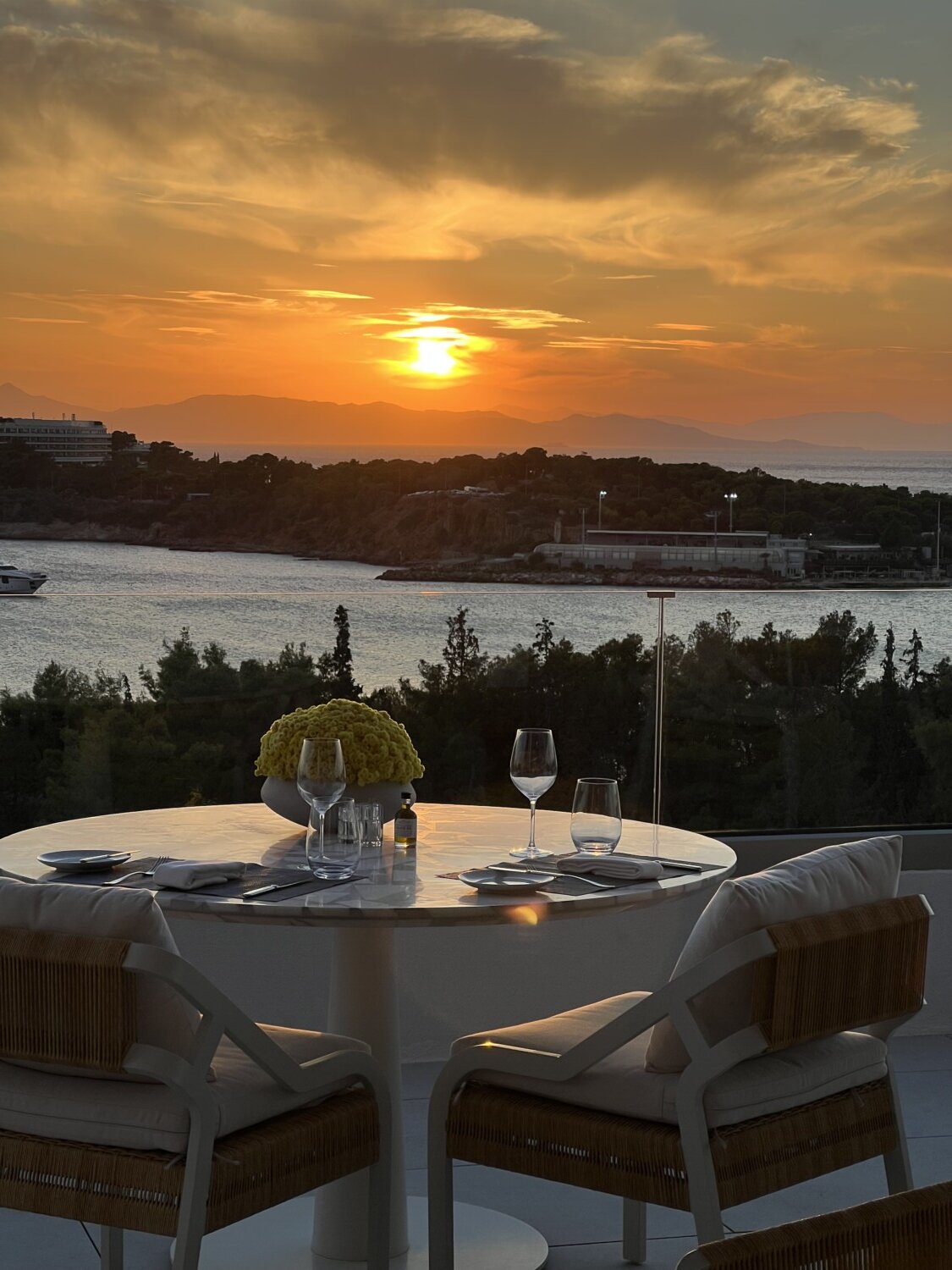 Περίμενα με τεράστια ανυπομονησία να δω το roof top καθώς είχα ακούσει τόσα πολλά από την φίλη και συνεργάτιδα Ελένη Χουρίδου (Communications & PR Manager Grecotel). Ανεβαίνοντας στον 4ο όροφο του ξενοδοχείου βγαίνω από το ασανσέρ και ξαφνικά είναι σαν να βρίσκομαι σε ένα μέρος που δεν ξέρω από που να ξεκινήσω να περιγράφω. Ήταν σαν να κάθομαι στο πιο όμορφο τραπέζι του κόσμου και να υπάρχει ένας ζωντανός πίνακας μπροστά μου. Καθίσαμε και απλά αφεθήκαμε στην μαγεία του τοπίου. Ένα τοπίο που μέχρι ο ήλιος να δύσει, τα χρώματα του ουρανού αλλάζουν αφοπλιστικά .